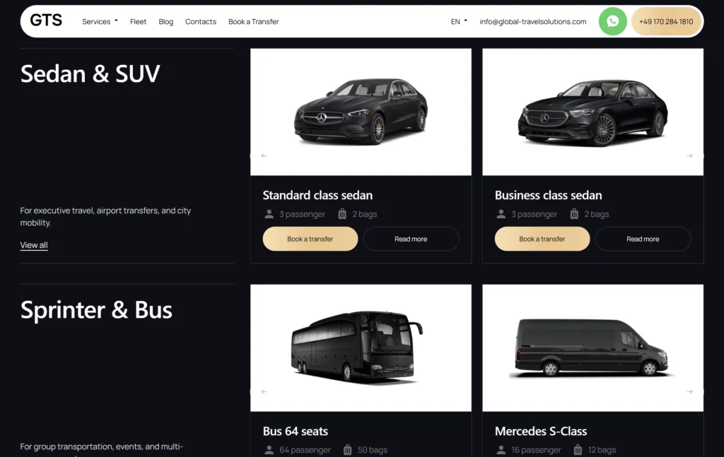 Сайт міжнародного сервісу преміум-трансферу Global Travel Solutions