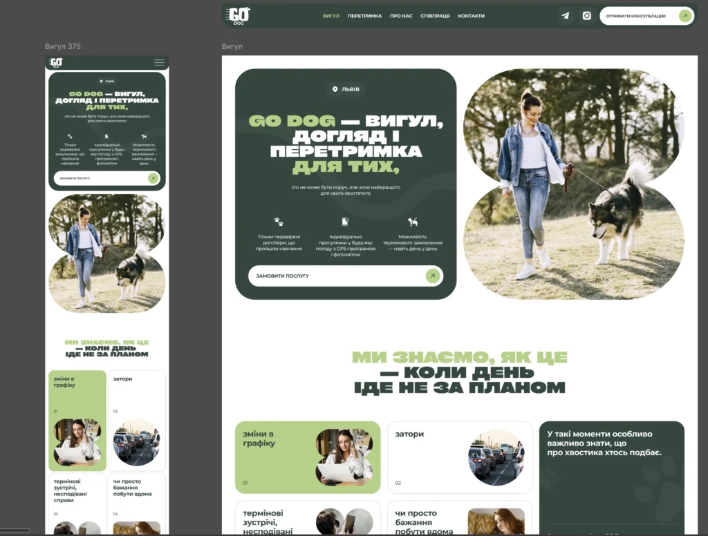 Сайт сервісу нянь та перетримки тварин Go Dog