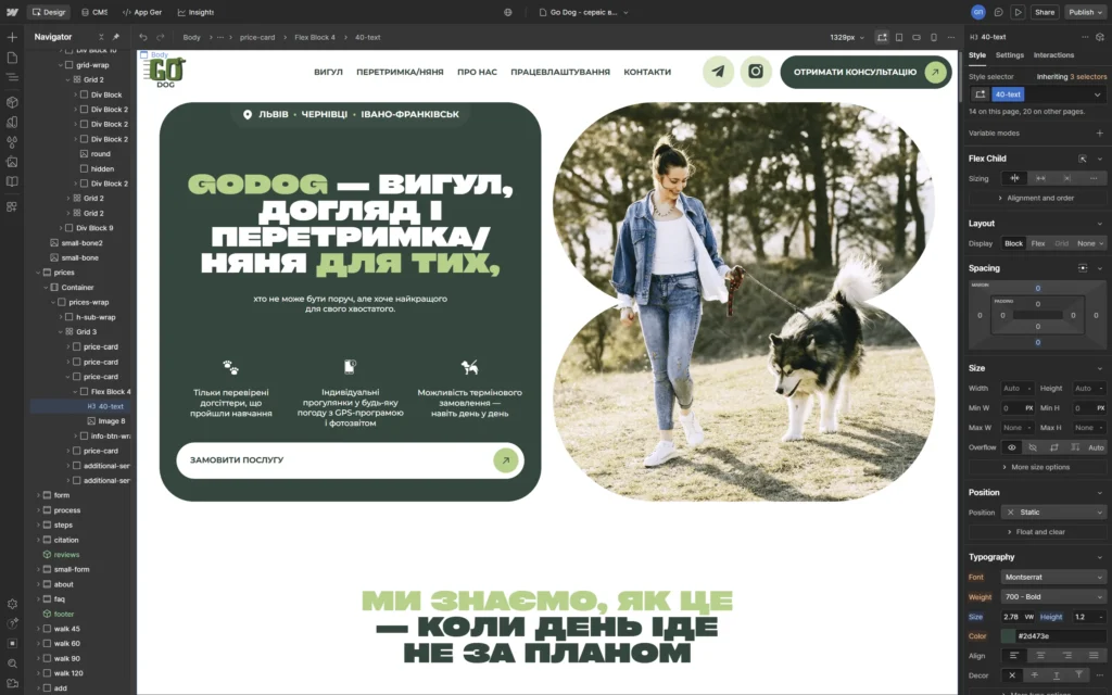 Ми побудували сайт як багатосторінкову структуру під різні послуги.