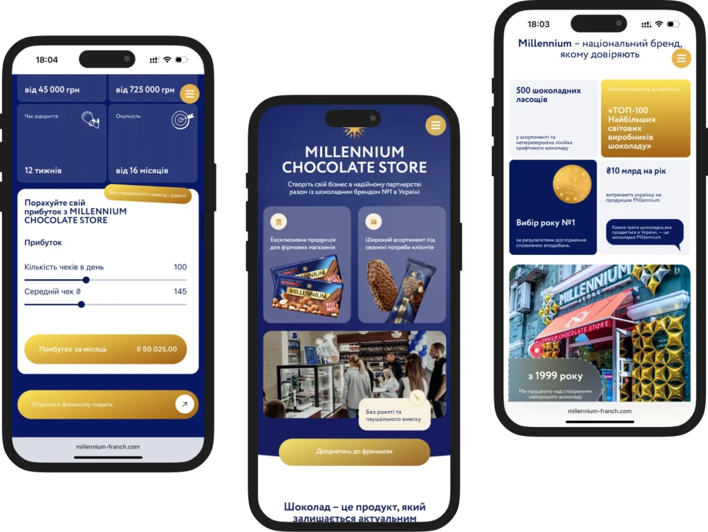 Сайт для продажу франшизи магазинів Millennium