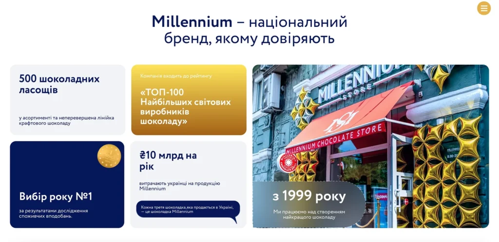 Чітко демонструє, чому варто обрати саме Millennium. Потрапляючи сюди, людина одразу відчуває статус бренду. Це не франшиза безіменної кав’ярні — за магазином стоїть один із найбільших і найвідоміших українських брендів.
