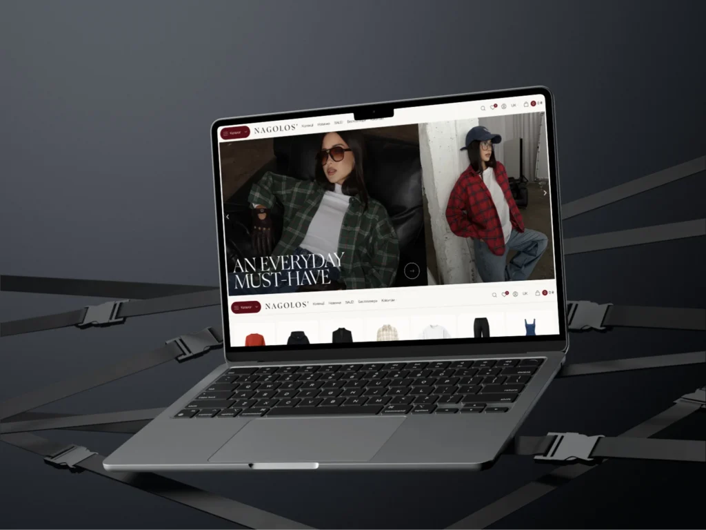 Nagolos — інтернет-магазин стильного жіночого одягу. Головна задача сайту — створити естетичний і зручний fashion-магазин, де покупці можуть не просто переглядати окремі речі, а швидко підбирати готові образи та купувати їх у кілька кліків.